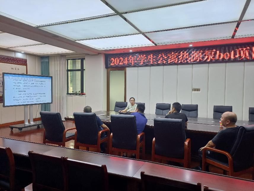 经过我公司方案与学校研讨会上,部门负责人详细介绍了学生公寓热源泵BOT项目规划、系统性能、收费标准、售后服务等基本情况,与...